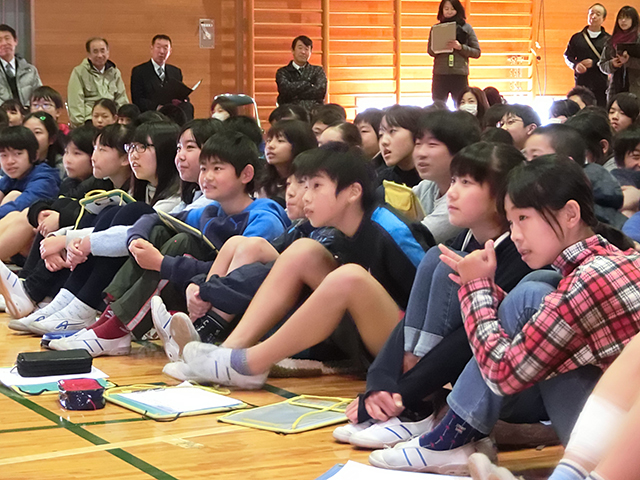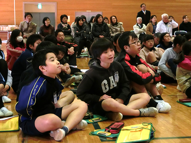 「意外とたくさん砂糖が入っているので、ごはんの前にたくさん飲まないほうがいいですね」とこばた先生。あわせてスナック菓子の油分の多さについても紹介され、自分が知っている飲み物やお菓子が登場するたびに、会場からは驚きの声があがりました。「みんなの体は食べ物でできています。食べる前にその食べ物のことをちょっとだけ考えてみるといいかなと思います」とこばた先生が児童たちにアドバイスして、2時間目は終了しました。