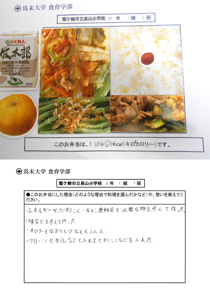 そうですね、とてもパワーが出そうなお弁当でいいと思います。緊張するとビタミンCが壊れてしまうので、みかんといちごはビタミンCたっぷりなのでいいですね。ボリュームが多いので、牛乳は運動後に飲んでもいいかもしれませんね。