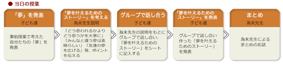 「今日は、みんなの夢を聞くことができてよかったです。今日発表しなかった人も心の中にこんなことやってみたいと夢があるかもしれないし、まだぼんやりとしかわからない人もいるかもしれないけど、今日友だちと話した中で自分なりに考えてくれたらいいなと思います。