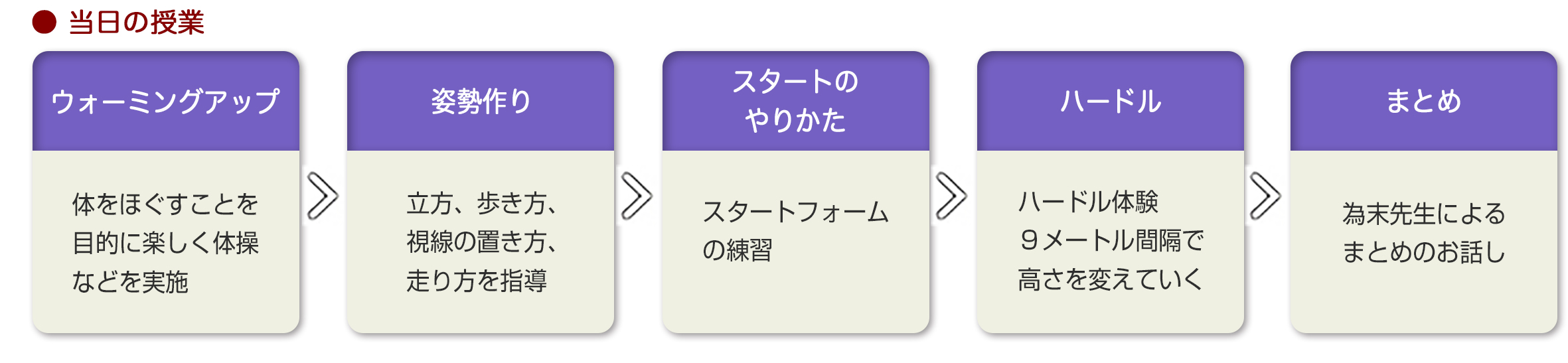 「ハードルで大事なのは姿勢。体をまっすぐにすることを忘れないでください。今日はみんな、すごくハードルがうまくなったと思うので、これからも練習をつづけてください」という為末先生の挨拶で、ハードルの授業は終了となりました。
