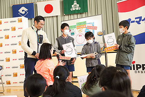こばた先生が、「食事は体の栄養補給にもなるし、みんなで楽しく食べると心の栄養にもなりますね。みなさんも学校では友達と楽しく給食をモリモリ食べてほしいと思います」としめくくりました。