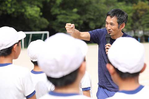 「1台目のハードルと同じスピードで走ることが大事だよ。1台目を蹴とばすくらいの勢いで跳んでみよう!」「ハードルの上に壁があって、それを蹴破るように跳んでみて!」と跳び方のコツを教えながら、1人ひとりに声をかける為末先生。児童たちも転んでもすぐに起き上がって完走する人、「オリャー!」と雄叫びを上げながら力強く跳ぶ人などパワー全開。「そう、そんな感じ!いいじゃんいいじゃん」と先生も嬉しそうです。
