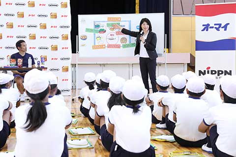 「ガソリンを入れないと車が走らないように、人間のガソリンは食べ物です。為末先生のメニューを見ると、しっかりガソリンが入っていますね。だから速く走ったり動けたりするんだと思います」とこばたさん。また「試合前はたくさん食べるとすぐに動けなくなるので少なめにしましたが、たくさん練習する時はたくさん食べるようにしていました」という為末先生の言葉を受け、「運動する時や勉強する時は、しっかり食べてくださいね。食べ物にはいろんな働きがあり、バランスよく食べることが大切です」と、食べ物の働きについて解説しました。
