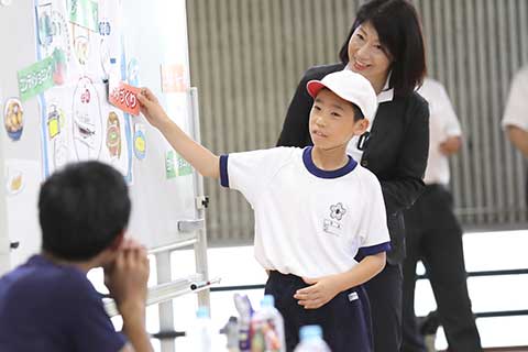 「甘いドリンクを飲んではいけないのではなくて、飲んだら動く。おやつを食べた分だけ動く、ということを忘れないでください」とこばた先生がみんなにメッセージを送りました。為末先生も「今日のことを頭の中で覚えて、たくさんごはんを食べてもらいたいと思います」とコメントして、2時間目は終了。それでも児童たちの興味は尽きず、休み時間になってもペットボトルの前に集って飲み物の甘さを確認していました。