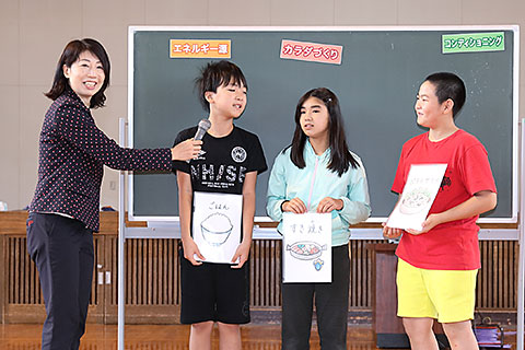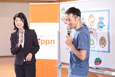 あるチームは「ご飯(エネルギー源)、すき焼き(カラダづくり)、ポテトサラダ(コンディショニング)」のセットになっていて「役割としては正解の組み合わせですが、和食か洋食、中華などメニューがそろうとさらにいいですね!」とこばた先生。また「ごはん(エネルギー源)、ステーキ(カラダづくり)、野菜スープ(コンディショニング)」という組み合わせのチームを見た為末先生は「味も栄養もカンペキだね!」と児童たちを褒めました。